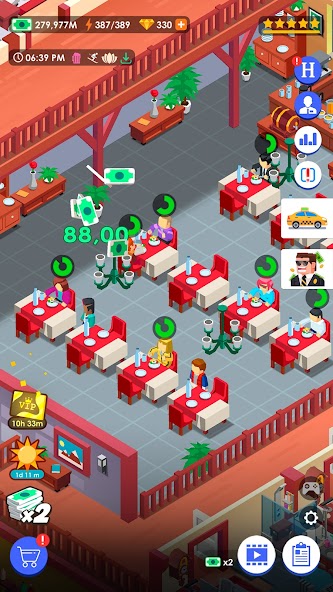 Idle Hotel Empire Tycoon est un simulateur économique captivant dans lequel vous développez votre propre chaîne hôtelière à partir de rien. Le gameplay repose sur une gestion stratégique des ressources pour offrir une expérience unique aux clients tout en augmentant vos revenus. Commencez avec un petit hôtel et débloquez progressivement des établissements plus luxueux, en améliorant tout, des intérieurs des chambres aux services complémentaires pour les invités.