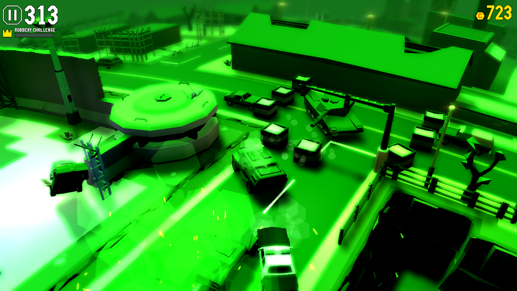 Les dérapages, les sauts sur des rampes, les explosions et les destructions constituent les éléments fondamentaux du jeu. Tout au long de votre progression, vous êtes pourchassé par la police, les forces spéciales et même des hélicoptères. Des bonus puissants comme l’Onde de choc, le Saut ou le Mode frénésie vous aideront à semer vos poursuivants, tout en ajoutant de la stratégie et du spectaculaire au gameplay.