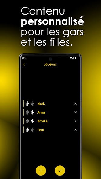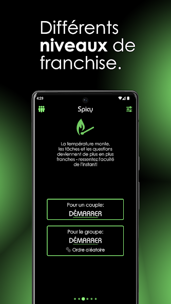 La particularité de Action ou Vérité réside dans ses cinq modes de jeu avec différents niveaux de difficulté. Attention – le dernier niveau peut se révéler très exigeant ! L’application permet d’ajouter un nombre illimité de participants, idéale pour les grandes réunions.