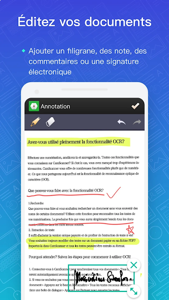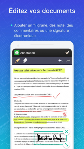 CamScanner transforme votre smartphone en un puissant outil polyvalent qui simplifie le processus de numérisation, de gestion et d'organisation des documents. Désormais, numériser des documents papier devient rapide et facile, directement depuis votre appareil.