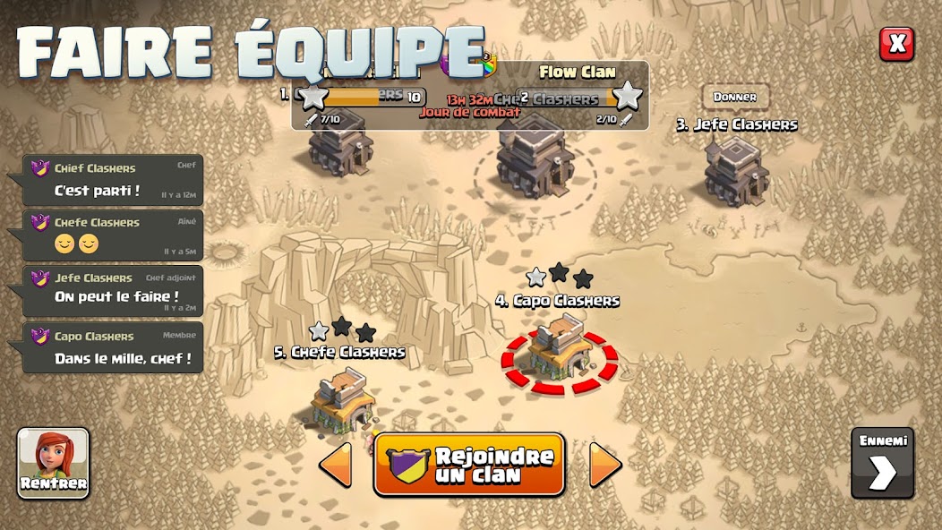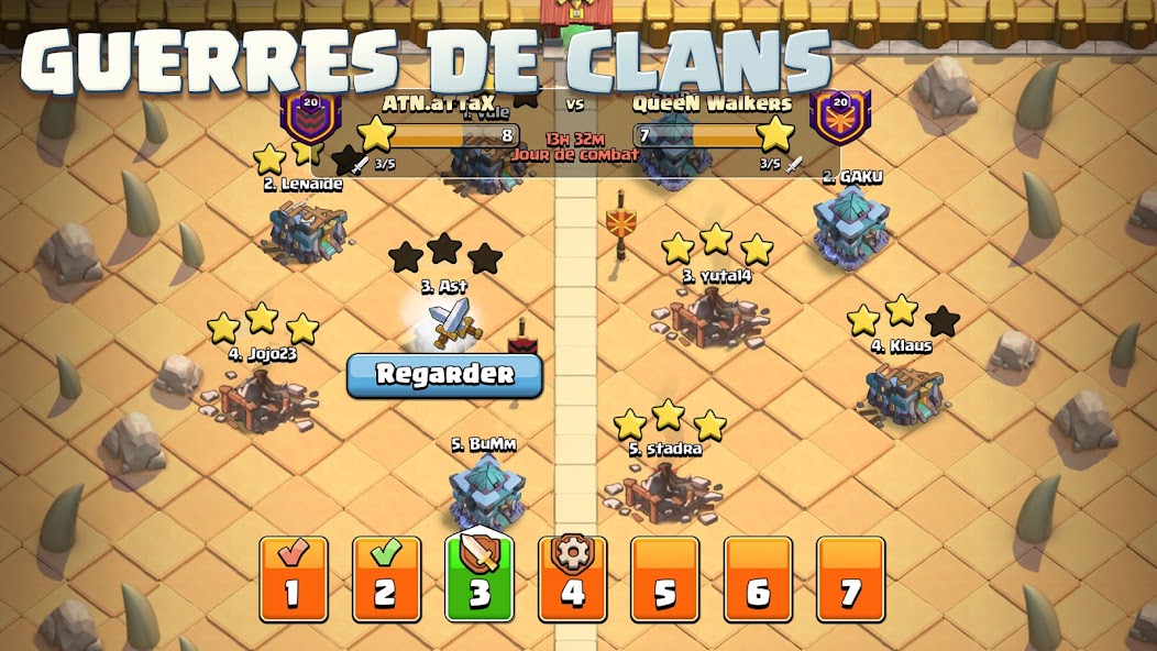 L'un des aspects marquants du jeu est la possibilité de rejoindre un clan ou d’en créer un. Les clans permettent de s'associer à d'autres joueurs, d'échanger des troupes et de participer à des Guerres de Clans – des affrontements épiques entre clans adverses. Chaque guerre est un défi stratégique collectif, où la contribution de chacun compte pour remporter la victoire. Une équipe bien coordonnée est la clé du succès.