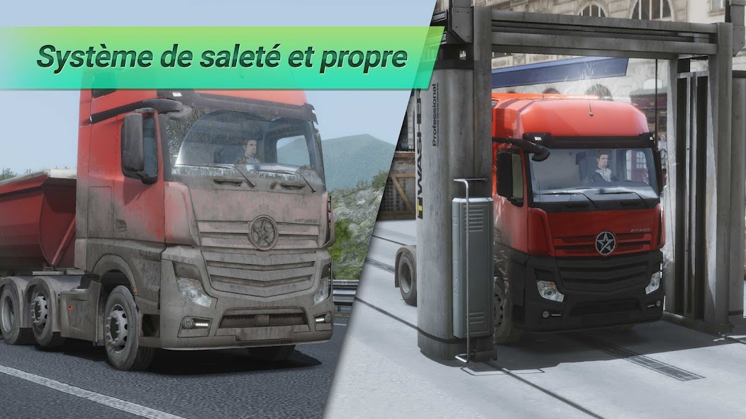 - Une physique de conduite réaliste simulant le comportement des poids lourds sur la route ;