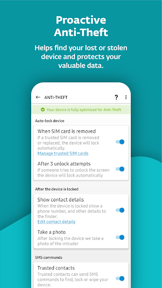 En cas de vol ou de perte de l’appareil, le logiciel offre un contrôle rapide. Le système de solution proactive contre le vol permet de verrouiller le smartphone à distance, de localiser sa position ou d'effacer les données confidentielles. Grâce à son interaction avec ESET HOME, la gestion de toutes les fonctions devient pratique et accessible, ce qui aide à gérer efficacement la situation même dans des conditions difficiles.