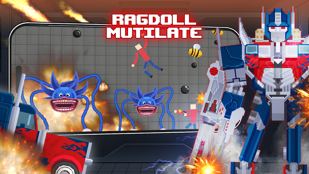 Ce sandbox s’appuie sur un modèle physique avancé, vous permettant de manipuler les ragdolls à votre guise. Les poupées virtuelles sont composées de 12 parties, incluant la tête, le torse et les membres, chacune pouvant être endommagée. Vous pouvez attacher ou détacher les parties du corps, utiliser divers outils et même organiser des batailles épiques. Grâce à ces mécaniques, chaque action devient imprévisible et incroyablement enthousiasmante.