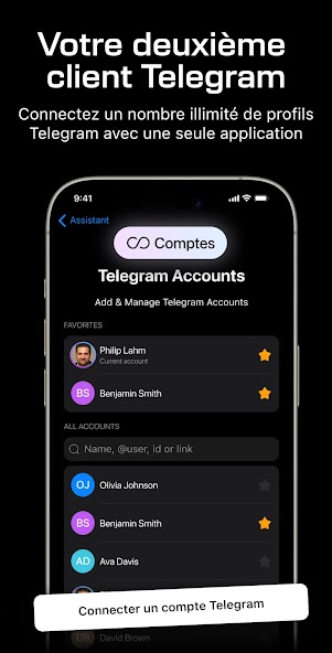 La plateforme est conçue pour un usage à la fois personnel et professionnel. Vous pouvez facilement basculer entre un nombre illimité de profils, séparant ainsi vos contacts personnels et professionnels.