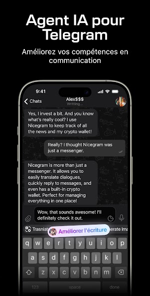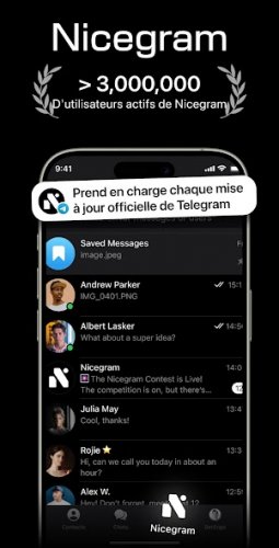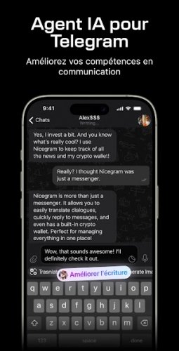 Nicegram est une application de messagerie avancée avec intelligence artificielle, qui combine les fonctionnalités de Telegram avec une série d'options uniques pour une communication plus pratique et sécurisée. Grâce à l'API ouverte de Telegram, la plateforme regroupe tous les avantages du messager original tout en ajoutant des fonctionnalités inédites, renforçant ainsi le contrôle de votre environnement numérique.