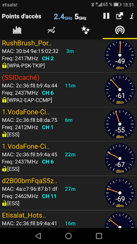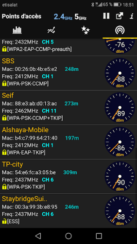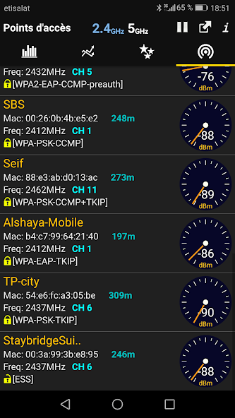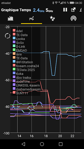 La vérification des réseaux WiFi devient facile grâce à la visualisation des données. L’application propose un affichage graphique de l’encombrement des canaux, permettant de surveiller en temps réel les points d’accès et d’évaluer leur activité. En outre, un outil de diagnostic fournit des recommandations claires pour optimiser le signal, simplifiant ainsi l’identification et la résolution des problèmes éventuels.