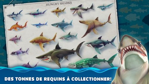 - Prenez le contrôle de nombreux requins. Plus de 40 types de requins sont à votre disposition, allant des petits requins de récif aux gigantesques mégalodons, voire des espèces fantastiques comme les requins zombies. Chaque requin possède des compétences uniques et un style de jeu distinct.