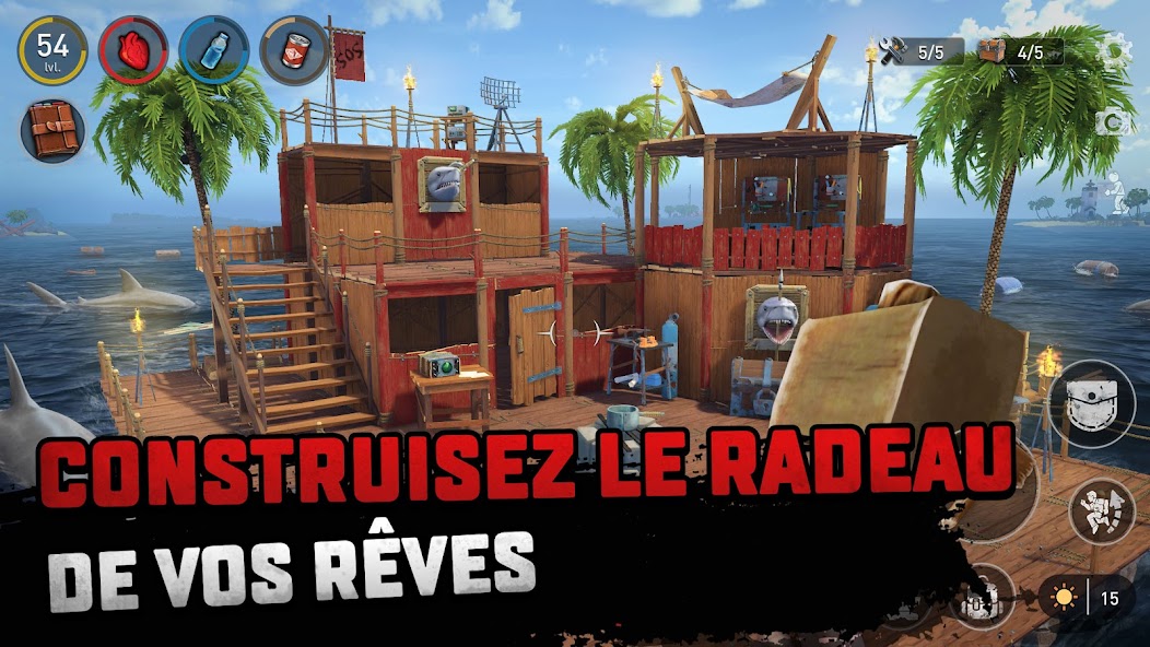 - Agrandissez votre radeau en ajoutant des étages, des structures renforcées et des défenses efficaces contre les attaques.