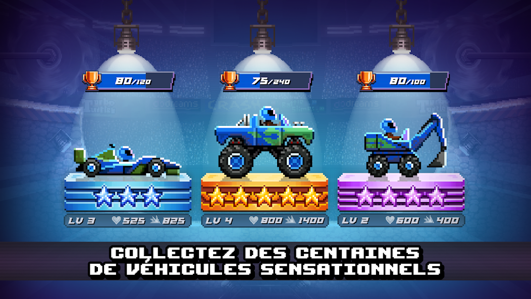 Avec son vaste choix de véhicules de tous types et niveaux, présentés dans un style pixelisé, le jeu offre une ambiance unique. Malgré sa simplicité, ce projet capte rapidement votre attention et garantit du plaisir, même pour de courtes sessions de jeu.