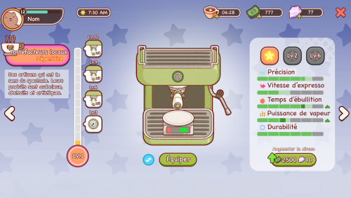 Dans ce jeu, vous vous sentirez comme un véritable expert en art du café, confectionnant des boissons selon les goûts de chaque client. Expérimentez une multitude de recettes, combinez divers ingrédients et trouvez les proportions idéales. Chaque tasse de café ne doit pas seulement étancher la soif, mais aussi laisser une impression mémorable pour que vos clients reviennent toujours.