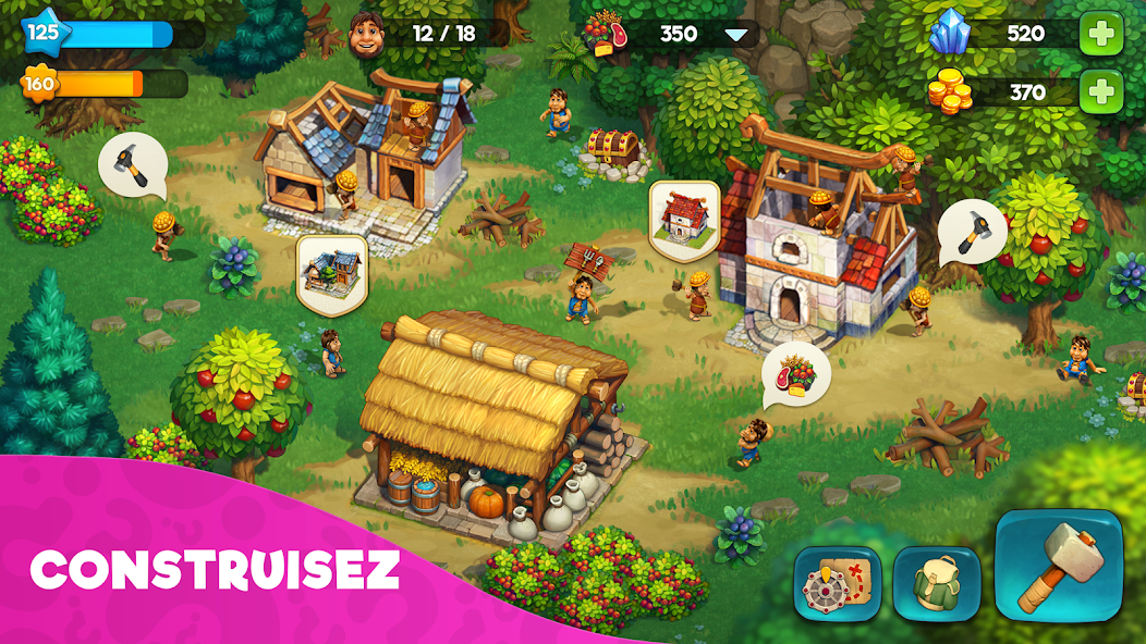 - Construisez des maisons, des fermes, des ateliers et bien d’autres bâtiments nécessaires au développement de votre communauté.