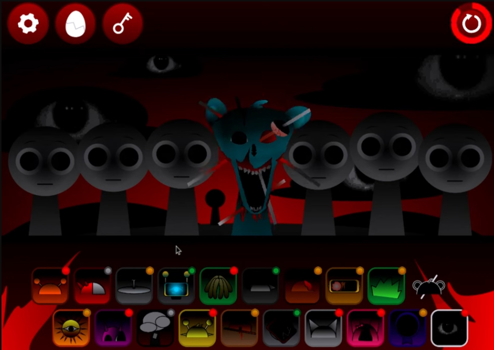 Les Sprunki, acteurs centraux de Sprunki Infected, sont d’inquiétants interprètes. Leur apparence grotesque — visages déformés et détails lugubres — provoque un sentiment d’inquiétude. Mais tout change lorsqu’ils commencent leurs performances : leurs compositions transforment la peur en harmonie musicale.