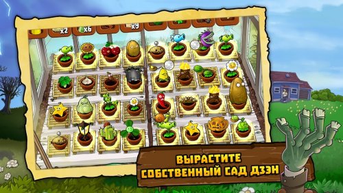 - Placer stratégiquement arbres, légumes et arbustes afin de résister aux hordes de zombies.