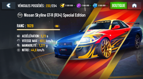 Les véhicules d'"Asphalt 8" peuvent être améliorés et personnalisés pour s’adapter à votre style de conduite. De nombreux upgrades et options de tuning permettent de maximiser le potentiel de n’importe quel véhicule. Profitez de :