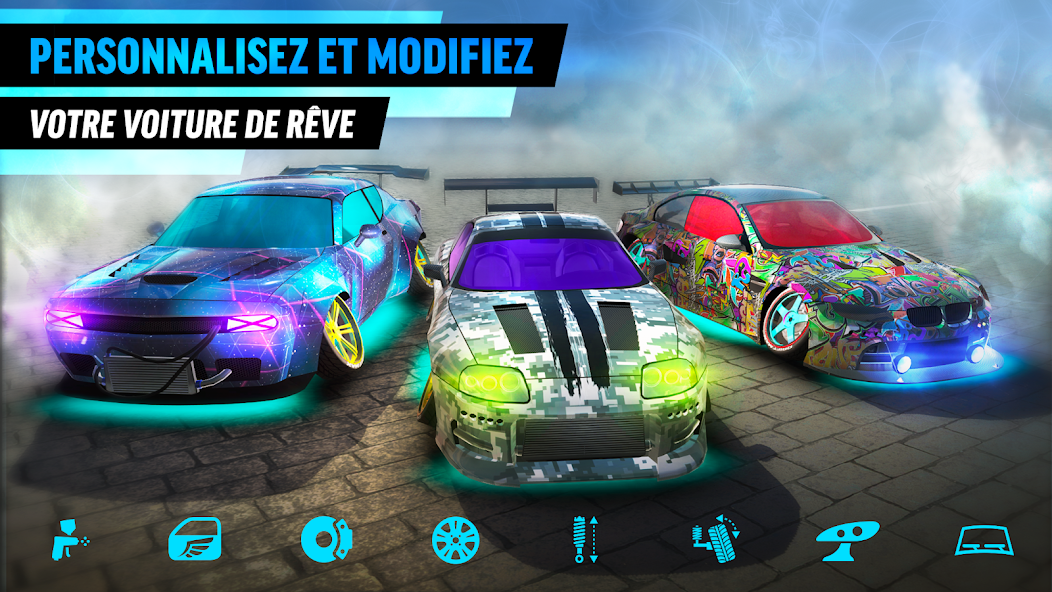L'une des particularités de "Drift Max World" est la possibilité de personnaliser vos voitures. Vous pouvez modifier :