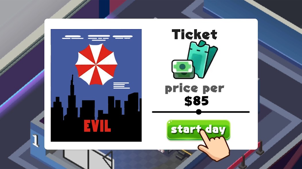Empire du Cinéma Idle est un simulateur stratégique où le joueur prend en main la gestion d’un petit cinéma dans le but de le transformer en un réseau florissant. Le succès commence par des tâches simples : acheter des salles de cinéma, organiser des horaires et attirer des visiteurs. Au départ, vous aménagez des caisses et une salle d’attente avec des canapés, puis vous ouvrez votre première salle de projection. Ces étapes posent les bases de la création d’un véritable empire cinématographique, où chaque détail compte.